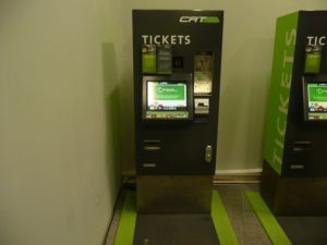 -Sバーン出口からCAT入口まで壁伝いに黄緑色の道案内がずっと表示されています。(画像ではちょっとわかりづらいですが、路面電車奥に見えるようなラインです。)