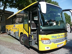 乗り降り自由な、よくある観光バスです。ザルツブルク中央駅近くにも停留所はありますが、終点に近い停留所なので、そのまま鉄道に乗って帰るために降りるには良いですが、乗る場所としては意味がありません。スタート地点は中央駅から10分程度歩いたバロック美術館前まで行きましょう。一番安いのは2時間券ですが、最初から最後まで乗っているだけで2時間近くかかるため、途中下車している時間はありません。