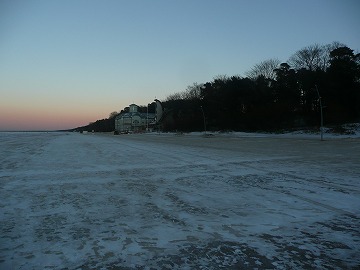 -リーガ駅からスルァカ(Sloka)、トゥクムス(Tukums)方面の電車で30分位、マユァリ(Majori)で降ります。30分に一本程度で、運賃は1.4ユーロ程度で格安です。海水浴場で有名ですが、冬でも水平線が広角に見えて綺麗なところです。日没時間に合わせて行きましたが、太陽が沈む方角までは水平線がなく、オレンジ色に染まった空でその雰囲気を味わいました。2月で気温はマイナス9度でした。でも海の景色は気持ち良いです。