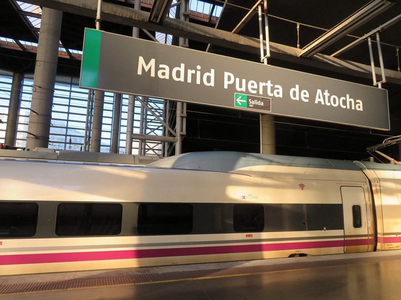 AVEに乗るために地下鉄で移動する場合は、1号線のAtocha Renfeで降ります。5号線から1号線に乗り換える際にGran Viaで降りる予定でしたが、工事中で通過されました。アナウンスを聞き取りづらく、降りる駅を乗った駅から数えていたのですが、どうしても一つ足りず、理由もわからずChueca⇔Callao間を2往復。初めは工事している駅すら暗くて通過していることさえ気づきませんでした。工事中で使えない駅は海外ではよくあることで度々経験しています。時間にゆとりを持って移動しましょう。
