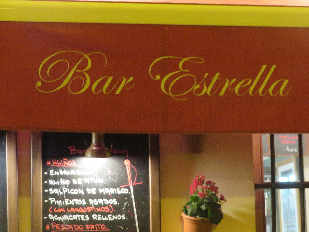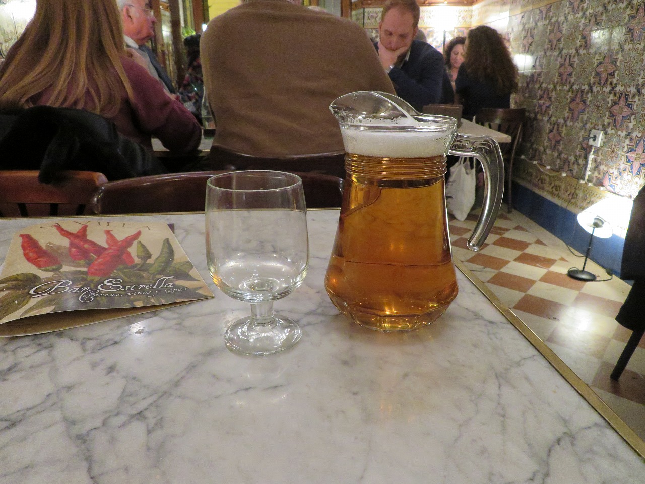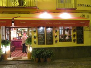 - アルカサバ側から入って、外で食べるところは同じくエル・ピンピですが、バルではありません。中に入り、もっと西へ進みましょう。間違って外でビールを飲んでから、再度バルで飲み直しました。