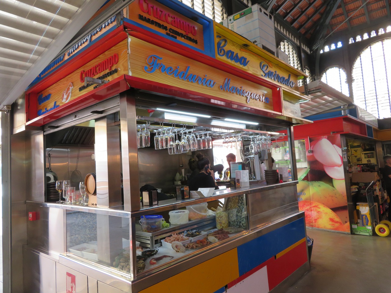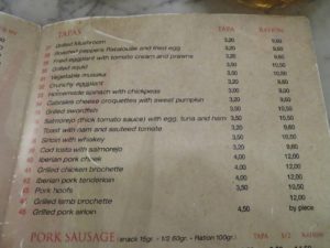 - アタラサナス中央市場の中にはバルがあり、結構そこでビールを飲みながらタパスを食べている人がたくさんいます。私も安ければ食べたかったのですが、レストランとまではいかないまでも思っていたより高かったので夕食まで我慢することにしました。