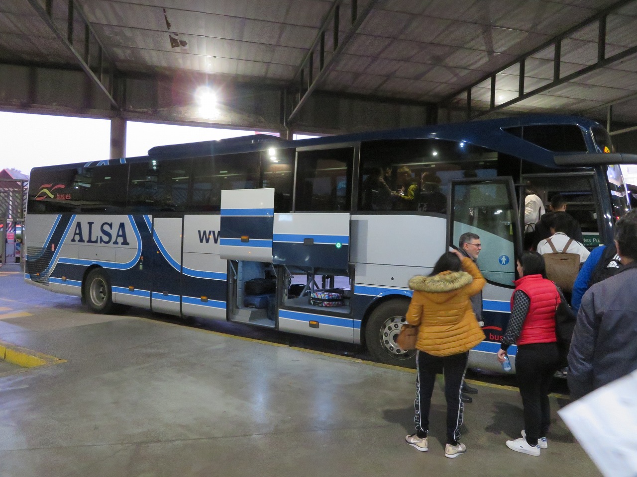 - グラナダ行きのバスはALSAで予約していたのですが、実際に乗ったのはAVANZAでした。乗り場(番線)は案内通りで間違いなかったのですが、心配だったので一緒に並んで待っていた現地の人に「自分はALSAで予約しているが、このAVANZAで大丈夫か?」と聞いたところ、「大丈夫、よくあることだ」と言っていました。