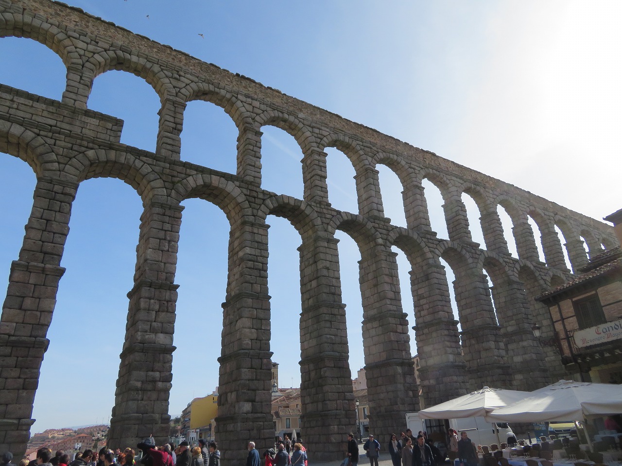 - 大雑把なタイムスケジュールは、8時にマドリード出発、9時半から12時半ぐらい観光、13時にセゴビア出発、14時半にマドリード到着。15時から18時ぐらいホップオン・ホップオフのバスでマドリード市内観光(一度も下車せず)。