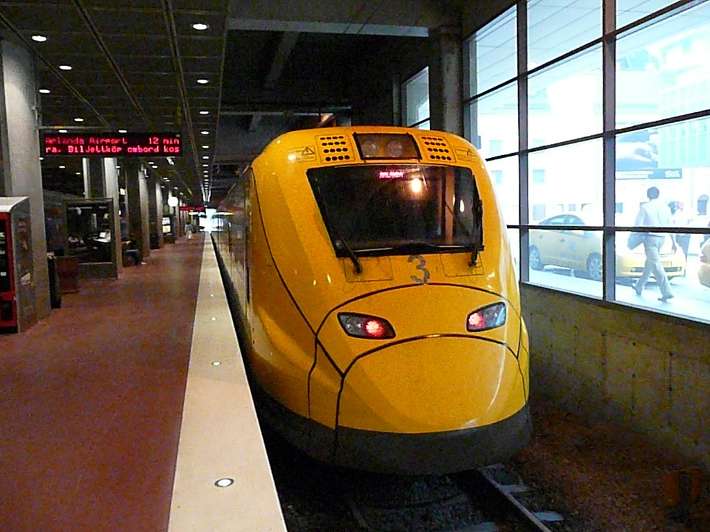 今回の北欧4カ国の旅では唯一スウェーデンの空港を利用する予定がなかったため、少し空いた時間を使い乗ることにし、用事もないのにアーランダ空港に行くことにしました。スカンレイルパスホルダーであれば追加料金なく乗ることが出来ます。220㎞/h以上で走り、空港まで直通で、快適です。結構空いていました。空港駅は地下にあるせいか、洞窟の中のようにひんやりしていました。