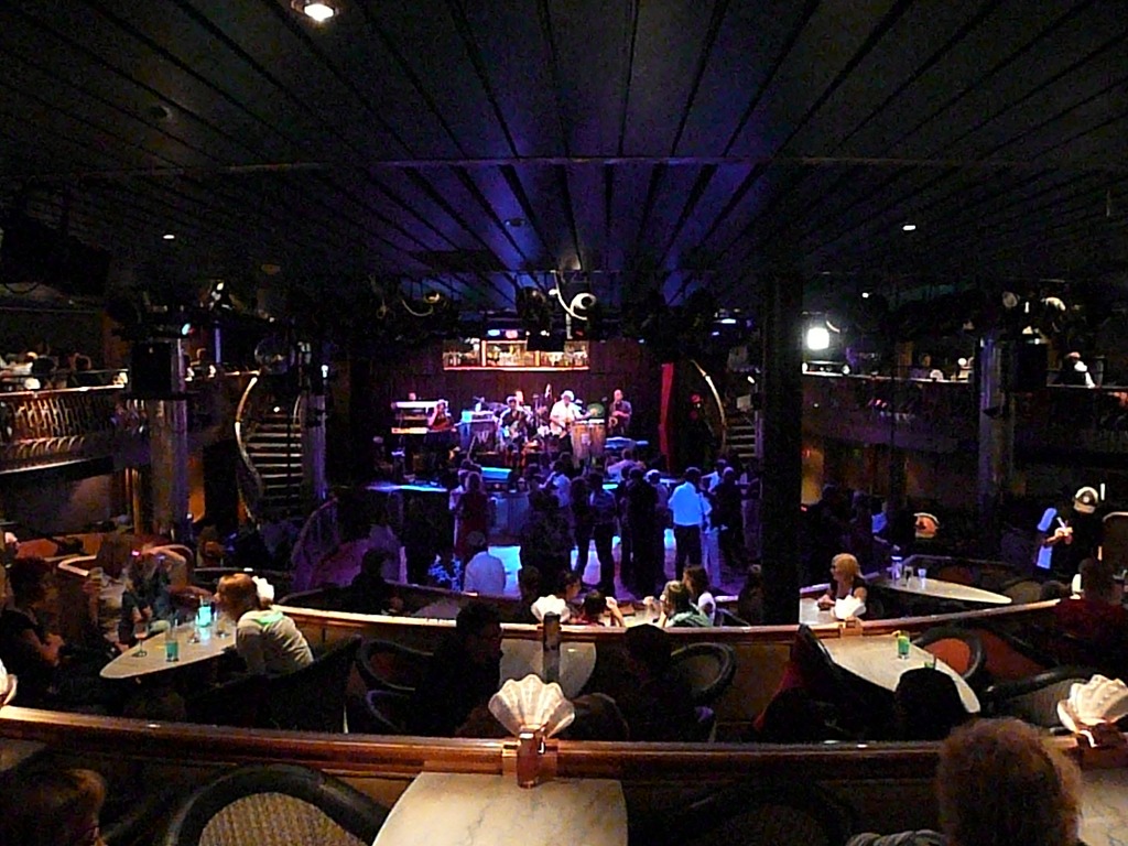 船内では買い物や、カジノ、ライブ、サウナ等いろいろ楽しめます。個人的にはあまり興味なかったのですが、写真はライブの光景を高感度写真で撮ったものです。